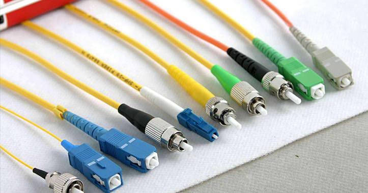 跳線在數(shù)據(jù)傳輸設(shè)備中一般用單模和多模來區(qū)分,單模跳線顏色通常為黃色,波長有兩種,分別為1310nm和1550nm,傳輸距離分別為10km和40km;多模跳線顏色通常為橙色,波長為850nm,傳輸距離為500m。根據(jù)接頭類型還可分為以下幾種: