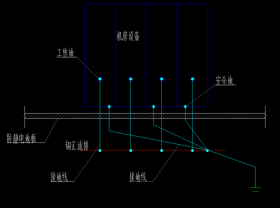 機(jī)房有架設(shè)高架地板,則應(yīng)以2.5mm之多芯裸銅線纏綿高架地板柱做地網(wǎng)。