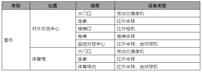 根據(jù)高校不同的應(yīng)用場景,需要選擇不同的前端攝像機(jī),以達(dá)到最優(yōu)的視頻監(jiān)控效果。具體點(diǎn)位分布如下: